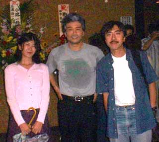 ストーリー(ネタバレあり)南青山の昔ながらの商店街、その一角にある古田輪業。先代には4人の娘がいる。若い頃に駆け落ち同然に家を飛び出し、今では小料理屋を切り盛りしている長女の弥生。少女の頃のピアノの家庭教師だった周一を婿養子に貰い家業の自転車屋を継いでいる五月。バイク販売業の梅本親平に嫁いで10年、何一つ不自由のない生活をしている葉月。少し歳が離れていて、広告代理店でバリバリと恋も仕事もこなしているむつき。家を出ている三人が今日は帰ってきた。先代(姉妹にとっては亡父)の七回忌の法要が営まれるのである。今の当主の周一、もともと音大出身で音楽で身を立てることを夢見ていたが、五月との結婚を機にそれを断念、自転車屋としての人生を歩んできた。時代は既に自転車ではなくなっていたが、先代のおしえを守り頑固なまでに自転車にこだわる。 小さな商店街、家族ぐるみの付き合いがある。ペットショップオーナーの友サン、豆腐やの源さん・千枝さん・勤左衛門一家。源さんは周一の幼なじみ、家業はほっぽらかして町内を取り仕切る、店はばっちりの千枝は料理の腕はからっきしダメ。息子の勤左衛門は、周一・五月の一人息子淳一と同級生、ふたりとも「バカ」で浪人中・・・。 こんな賑やかな家族+αがあーでもない、こーでもないしているところに、謎の人物訪ねてくる。亡くなった先代に自転車を教えて貰ったというその青年、七回忌に線香だけでもあげさせて欲しいとのこと。 話をしているうちに、そして顔をみているうちに、この青年の素性が判ってくる。「親父さんが怒ったところとそっくり。」 そして、周一の身に起こっている異変も・・・。 雨降って地固まる。「お寿司特上、お願いします。家族がひとり増えたもので・・・。」、おいら号泣。 感想&裏話 まずは本多劇場進出に感激。10年前、ちっちゃなセットの3人芝居から始まったIOHがココまで来たってことに、筋金入りの追っかけとしては感無量です。本多進出の舞台は「きみ去りしのち」で行こう・・・ってのはごくごく自然に決まったようです。これにはぴなも同意。他にも素敵な作品はあるけど、これが一番。そこで問題が・・・。今回の本多、三浦浩一さん(右の写真・中央。左は観劇ツアーの幹事の相方、じゅんさん)が出てくれることになっている、当然その役どころは主人公である周一というのが順当なところ。ところが三浦さんは「あれがヨシミの役だから・・・」。 脚本の林さん、全てのキャラをばらして再構成しようと決意しました。そして出来上がったのが今回の芝居です。結果、豆腐屋の家族4名と四女の職場の上司が増えました。そのことでストーリーには厚みが出ましたが、ひとりひとりのキャラは若干薄くなっただろうか。観劇ツアーでご一緒した人も同様の印象を受けた人が多いようだ。 例えば、バカの淳一、前回は「ひとりバカ」で際だっていたが、「同級生のバカ」勤左衛門の登場によりバカさ半減っていったところ。ただ、この2人のバカ、若干毛色が違うので並んでいてもうっとうしくはない。 さて、本が固まり、演出の林さんが主演の三浦サンに言ったことは「力を入れないで」といった趣旨のことだったそうな。久しぶりの舞台ということで、三浦さん当然、力が入ってしまう。好きな脚本、かわいがってきた劇団への客演ということでは余計。そんな気持ちを見越したのかどうなのか、極めてあっさりとした演出であった。舞台がでかい分、出演者多い分、そのあっさり感がちょうどいい具合であった。(もし、全力疾走していたらガチャガチャと見られたもんじゃなくなってたろう。) この手法、「本多に来て、これまでよりも幅広い層の客が来るのでは? とすれば、余り極端な演出をせずに万人ウケを狙う方が無難・・・」といううがった見方もあるにはあるが、結果として元からのファンにとっても悪くない演出であるとすれば成功と言っていいのであろう。 じゃあ、ぴなにとってはどうか? 正直言うとちょっともの足りなかった。この作品は何度見ても文字通り「号泣」するのであるが、今回は「うるうる」といった程度だったなぁ。やっぱり、あっさりしすぎなんだろうか。 脚本というよりは演出の問題、或いは舞台の広さのせいかな。 例えば、三女の旦那の親平。これまで林さん、磯部さんが演じていたのであるが、いやらしい、でも、憎めない・・・っていう微妙なキャラ、最後には「一緒に花を咲かせましょう」っていい人になっちゃうのですが、その決めぜりふがスっと流れちゃってるんですよ。おいらが好きだった「催眠商法的バイク売り込み」のシーンも削られてたしねぇ・・・。 何と言っても「家族が増えましたもので・・・」のセリフの扱いが気にくわなかった。帰ろうとする師走、それを引き留めようとするむつき。ここの動きって、再演の時はふたりともホンキだった。今はIOHを離れてしまった山本君、今井さんの芝居だったんだ
