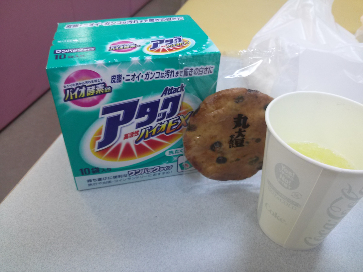 みんな、じっくりと・・・って感じです。担当の看護婦さんは、30歳くらいかしら。神戸から献血のためだけに来た・・・と言ったら感動してくれましたわ。 針サシは上手。全く痛みを感じませんでした。 テレビでは野球をやってましたが、ものの5分で採血終了。止血はバンドではなく、不織布の包帯。 【採血終了】受付に戻る。煎餅、おかき、ビスケットのバスケットを見せられて、「良かったらどうぞ。」これって、バスケットごと、ソファに持って行っていいのかどうか・・・。分からなかったので、煎餅とおかきを一つずつ貰う。 「今日は、偶数回目(88回)の献血ですので、どれか一つどうぞ」と見せられたのが、「洗濯石けん、台所用洗剤、ハンドソープ」。一番実用的な、洗濯石けんを頂く。「アタックバイオEX27g×10」。小袋に入っているので、今度の旅行に丁度いいから。 でも、これって、87回目や89回目には貰えないんですよねぇ。旅行献血の場合は、その辺の情報って大事ですわ。 献血後は、冷たい飲み物解禁。リアルゴールドを頂きながら、煎餅をバリバリ。静かな待合室でちょっと恥ずかしい。飲み物こそ飲み放題だけど、食べ物も限られているし、パンやアイスもない。やっぱ、ドナーさんの数が少ないと「生もの」は難しいのね・・・。 |