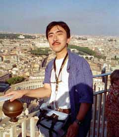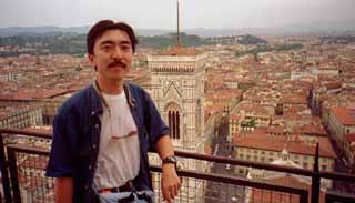 気さくなイタリア イタリア人が、というよりもイタリアという国そのものが気さくな感じがする。やはりラテン系だからであろうか? ガイドブックには「挨拶がコミュニケーションの基本」「挨拶の言葉は一方通行しない。言葉のキャッチボールが基本だ。」(「個人旅行」より)と書いてあったのだが、まさにその通りである。イタリアに入国してほんの2時間後、ヴェネツィア・リド島のまちなかをひとりでウロウロしていたのであるが、通りすがる人に「ぼんじょるのぉ」と声をかけてみたところ、皆さん「Buon giorno」と答えが返ってくるのである。ただ、それだけである。それ以上の会話がある訳ではなし。 (仮にあっても、それ以上のイタリア語は知らないのだからどうしようもない)。島全体が観光地であるせいもあるのだろうが、それにしても・・・という感じである。(ぴな自身、小中学生時代を日本の代表的観光地である鎌倉で過ごしたのであるが、仮に外人から「コニチハ」と声をかけられたら・・・うーん、やっぱ応えるかなぁ・・・。んじゃ、おいらもラテン系???)さて、左の写真は、イタリア最初にはいったリド島のリストランテのおぢさん。全く英語が通じないんだけど、身振り手振りで何とか食えたのはこのおぢさんのおかげ。右の写真は、フィレンツェのドゥオモの広場で似顔絵を描いてもらっているおいらを囲み(青シャツが絵師)、本人を前にしてあーでもない、こーでもないと、あくまでも陽気なイタリアーナ、現地時間は深夜1時・・・。 | |||