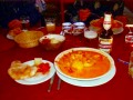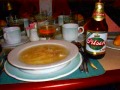 昼食はフォルクローレを聴きながら、アレキパの名物料理・エビのクリームスープ「チュペ・デ・カマロン」。